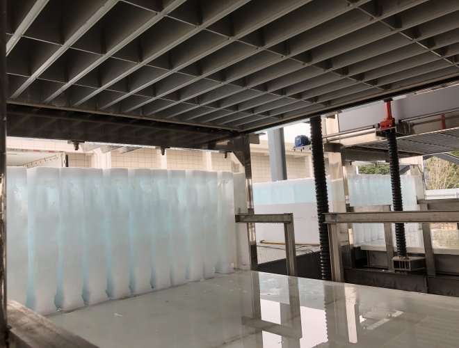 自動(dòng)化程度高,自動(dòng)上水、自動(dòng)制冰、自動(dòng)脫冰。脫冰后可直接推送裝車,也可將冰塊推送到輸送帶上,自動(dòng)輸送到冰庫,自動(dòng)碼垛。